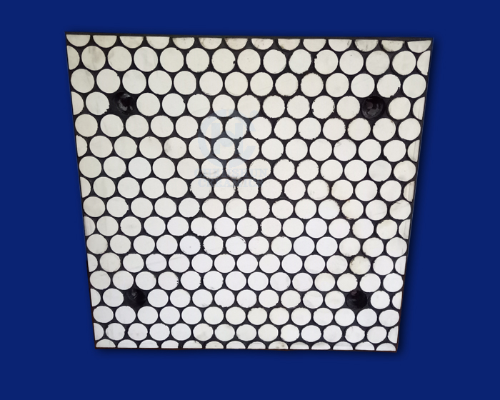 陶瓷橡膠復合板可分為兩種,一種是陶瓷加橡膠二合一的復合板,采用橡膠熱硫化方式,將陶瓷和橡膠硫化在一起,再用專用膠水粘貼于設備上,形成具有一定緩沖力的耐磨層,結(jié)合了陶瓷的高硬度、耐磨損與橡膠的高韌性方面的優(yōu)點,可以有效的分解物料對襯板的沖擊力。非常適用于需要承受較大沖擊力的設備做防磨,比如鋼鐵廠的燒結(jié)系統(tǒng)、料斗、料倉等落差高沖擊大的部位上。